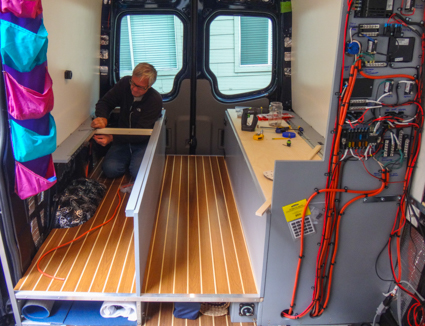 Next Jim built the portside bench around the battery and inverter which he'd already installed.