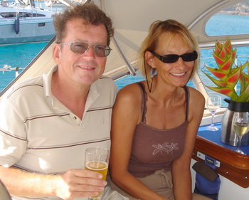 In December 2006 we attended a seminar by Beth Leonard in Newport Beach, CA. Along with lots of great information and helpful hints, we were introduced to their website. She and husband Evans Starzinger, of s/v Hawk, have an incredible amount of useful information for bluewater cruisers along with beautiful photos from their 2 circumnavigations. Jim had been in email contact with them and Beth said they were in English Harbor and invited us to stop by to say hello. We did and enjoyed our visit very much.