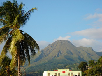 Mt. Pelee looms behind Tenaya anchored at St. Pierre