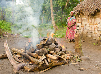 When the dancing had finished a man named Samson and a boy stepped up to demonstrate making fire. He rubbed two branches of wild hibiscus until he got a spark and then nursed it into a flame. The whole process took only a few minutes. Kelson had told us that before there were matches they would try to always keep a fire burning.