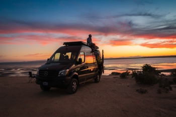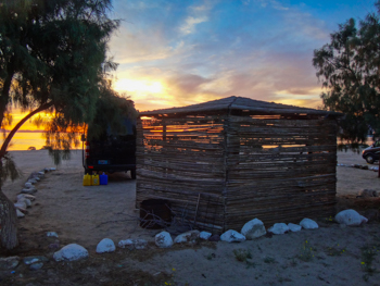 Jim was relieved to reach Jesus Maria with 1/4 tank of fuel. He'd planned our consumption well. Now we were fine, back in the land of ULSD. We rolled into LA Bay at dusk and went to Daggett's Campground to spent the night. We'd heard they had wifi and decent showers but the wifi wasn't working and the women's facilities didn't have hot water so, really, it wasn't worth the fee. We met John and Shalena in their brawny 4x4 Sprinter. They live in the desert, love the desert, and were trying to go as far south on dirt roads as time allowed. In a quandary because they had no extra fuel cans to continue, we offered to sell them ours. Everyone was happy. Learn more about their van here: