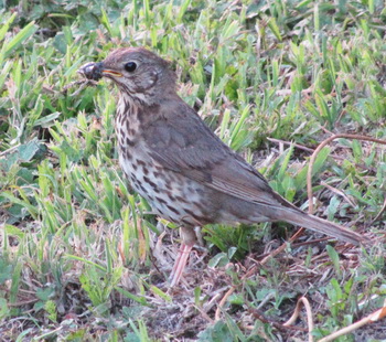 Song Thrush - Whangaparaoa Introduced. Very common. Runs or hops a few steps before stopping to pick up something to eat. Often carries snails to a favorite rock littered with smashed shells. Can live more than 10 years.