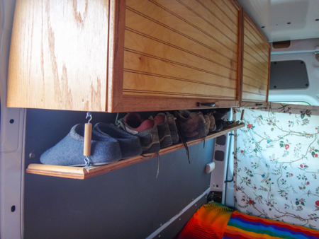 It's interesting to see what's important to people. A place for shoes was critical for Cindy. I get it. I had to convince Jim to make a big bin for shoes and boots in our van.