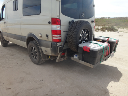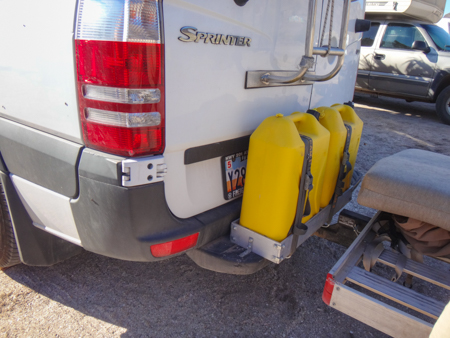 Because ULSD is nonexistent in Baja California Sur, we we curious how others dealt with with it. David's rack is big enough for two fuel cans and two bins for dirty truck stuff.