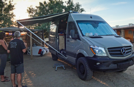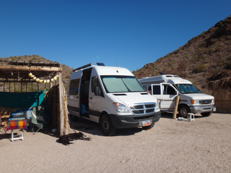 Tom and Cindy had their white Sprinter parked next to a palapa at Bahia Concepcion with a FOR SALE sign in the back window. So, if anyone wants one already fitted out...