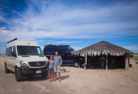 John and Shalena had driven to Bahia de Los Angeles from their home in Utah on as many dirt roads as they could find. John has fitted their 4x4 high roof Sprinter for the desert. The color, an earthy grayish green, is perfect for dirt.