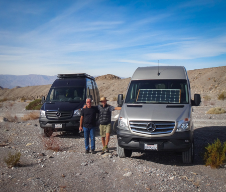 Mark was sitting in his 2016 4x4 Sprinter outside Furnace Creek Visitor's Center in Death Valley trying to figure out where to go when I saw it. I walked up, introduced myself, and said we had one too. Then I peeked in. Wow, he's a craftsman! Before long Jim had joined us and an hour had passed while talking all things Sprinter build.