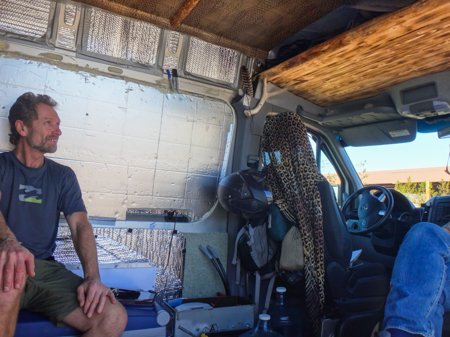 While we were looking at Cynthia's Sprinter Sportsmobile, Lance and Gabby came by. They are fitting out a high-top Ford Transit.